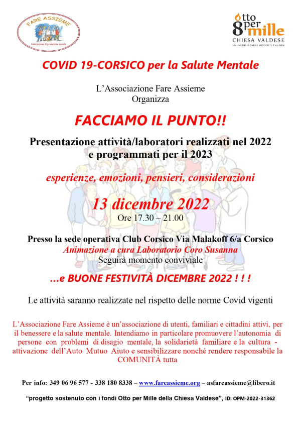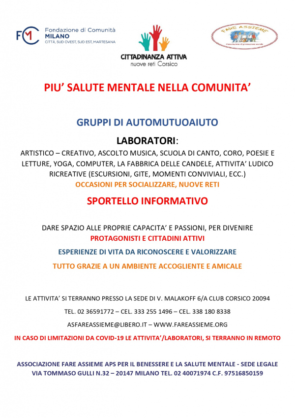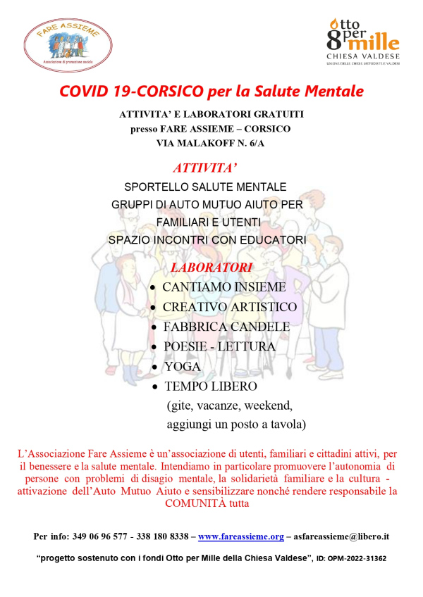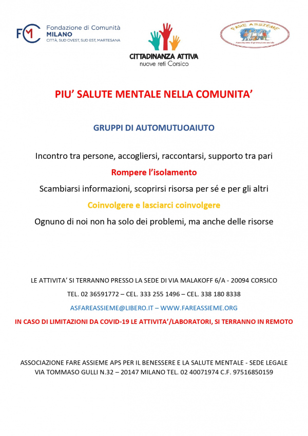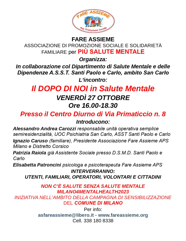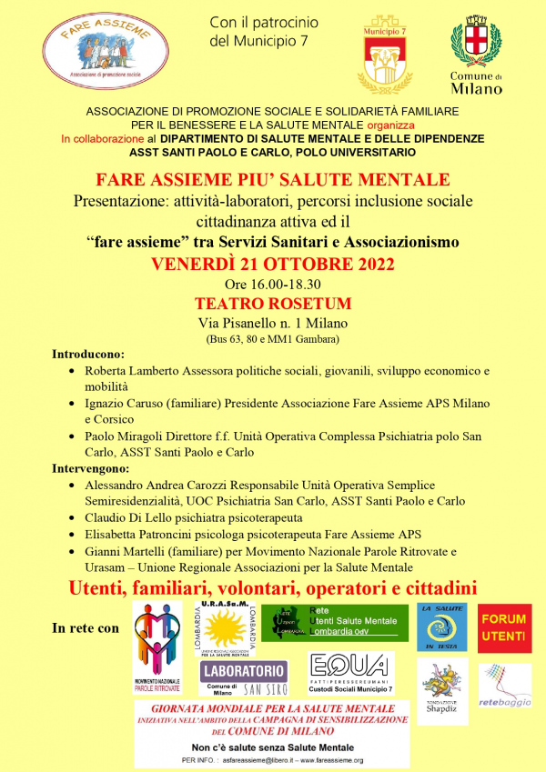 Momenti di incontro e confronto tra familiari, utenti e proffessionisti del settore sulle tematiche relative alla salute mentale.