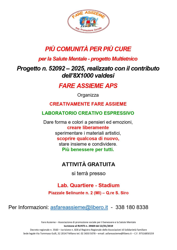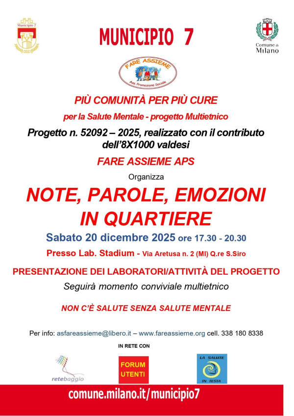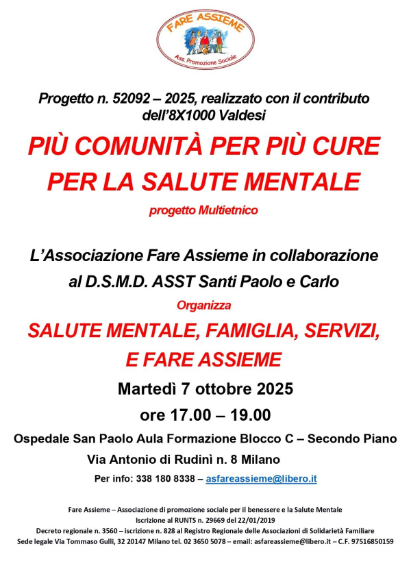 Si vuole favorire e promuovere un’esperienza di cittadinanza attiva ovvero di autodeterminazione di utenti le loro famiglie e cittadini sensibili al tema del disagio mentale.