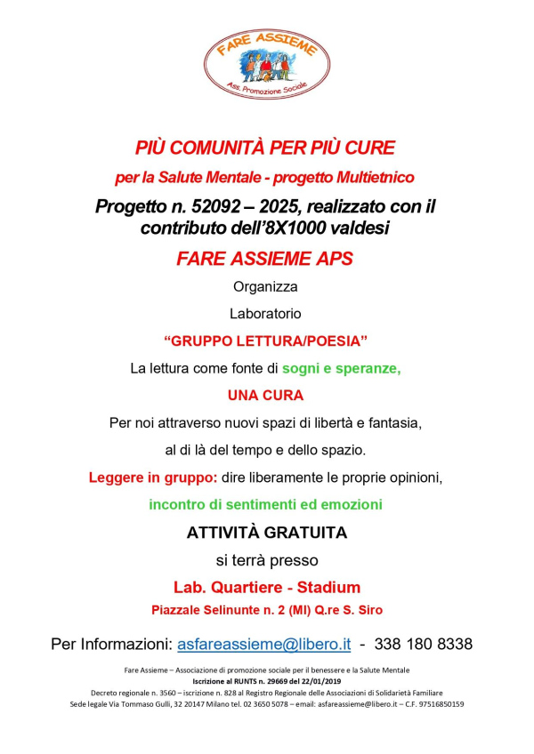 Una occasione per far conoscere alla comunità quanto emerso dai laboratori di lettura e poesia, i laboratori artistici e creativi e inoltre una nuova occasione di scambio e socializzazione.